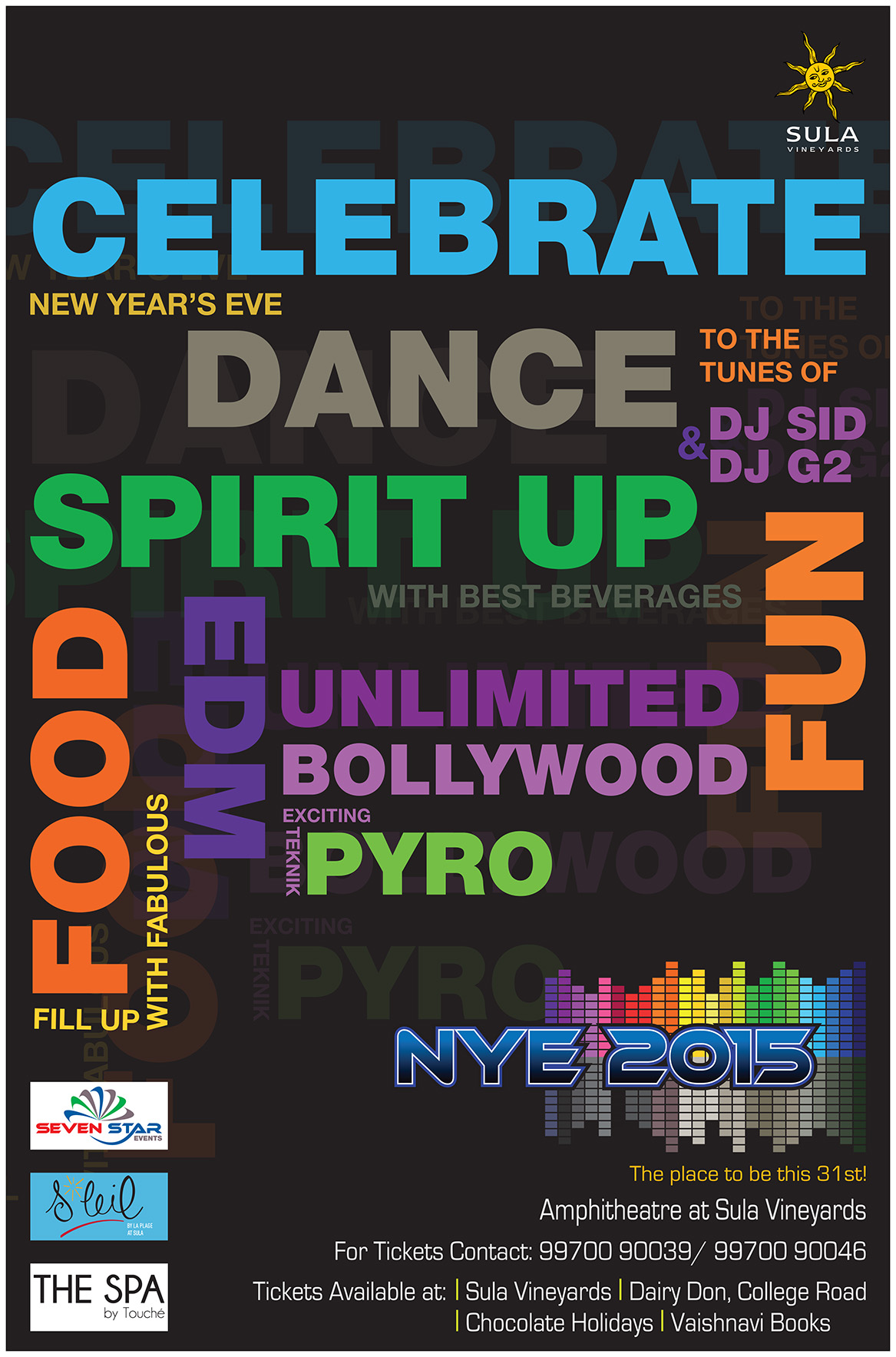 New year’s eve at Sula is back, NYE 2015 i.e. the New Year’s Party at Sula Vineyards, Nashik on 31st December 2014. This year the party gets even cooler with 2 DJs, who will get your feet tapping to some peppy Bollywood & groovy EDM music – a unique concept for Nashik! Here are the links to some videos from previous parties to give you an idea of how cool it is.
